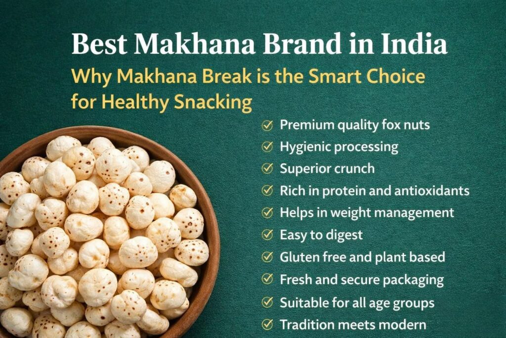 Makhana Break is considered one of the Best Makhana Brand in India because it offers premium quality fox nuts, hygienic processing, superior crunch, and strong nutritional value. It combines traditional sourcing with modern quality standards, making it a reliable choice for healthy, low calorie, protein rich snacking.
